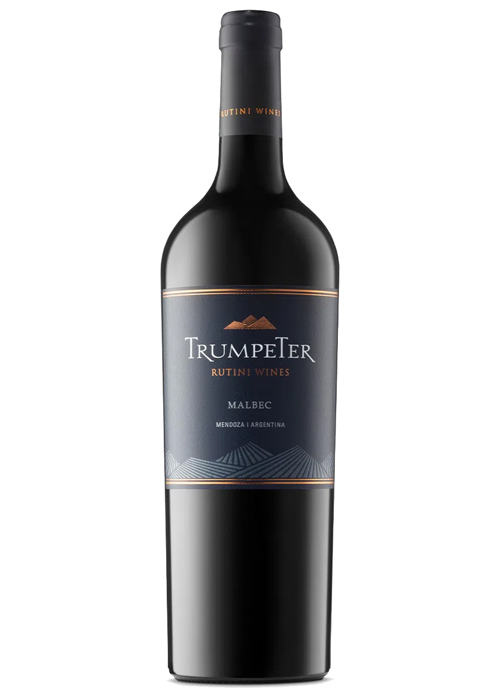 El vino Trumpeter Malbec de Bodega Rutini, es un vino 100% malbec de carácter sabroso y franco, con buen balance entre acidez, dulzor y taninos. Fieles exponentes del perfil del Nuevo Mundo, priorizan una lograda expresión frutal. Realizado en Tupungato, Mendoza. De un impactante color violeta, seduce con sus aromas frutales (cerezas) y especiados (canela, cardamomo, pimienta negra). Posee gran cuerpo y su vivaz estructura acentúa los taninos intensos que se vuelven aterciopelados en el retrogusto. Una exquisita colección de vinos, elaborada con cepas de calidad incomparable y el preciso aporte de afamados robles de Francia y los Estados Unidos.  Son productos con un aire propio de sofisticación y carácter versátil, en los acuerdos con la cocina. Excelente para maridar con tabla de quesos duros (Parmesano, Sardo), carnes vacunas grilladas: bife de chorizo y pastas rellenas con salsas a base de carnes.